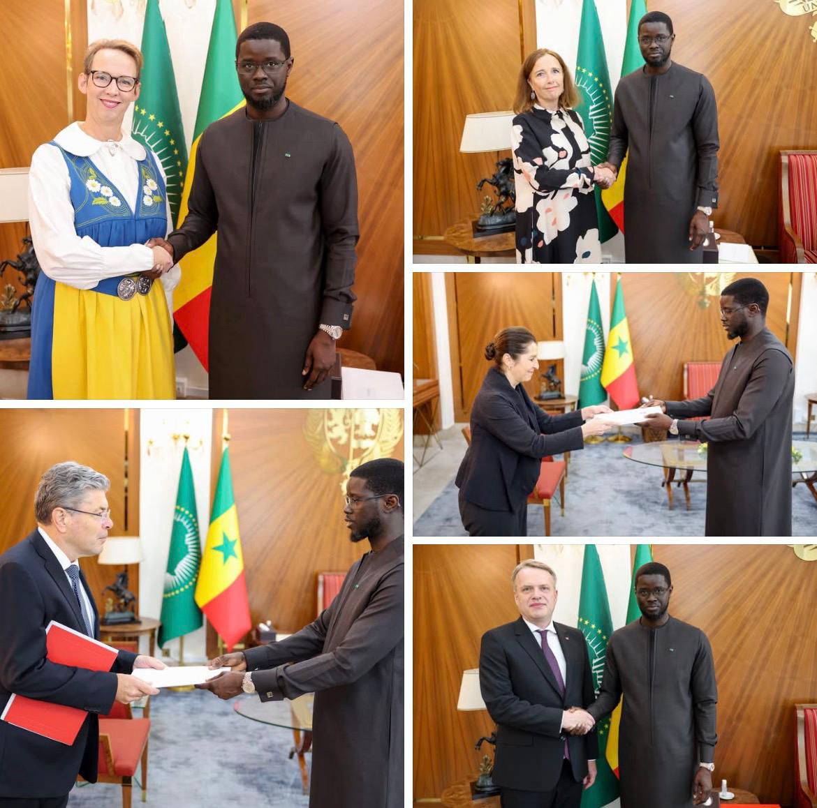 Le Président de la République, Bassirou Diomaye Faye, a reçu ce matin au Palais de la République les lettres de créance de cinq nouveaux ambassadeurs accrédités auprès du Sénégal.