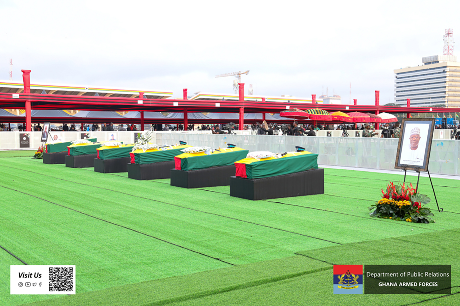 Les dépouilles des victimes, identifiées en coordination avec leurs proches, ont été présentées au public avant d’être inhumées. Parmi elles figurent deux membres du gouvernement, le ministre de la Défense, Dr Edward Kofi Omane Boamah, et le ministre de l’Environnement, des Sciences et de la Technologie, Dr Ibrahim Murtala Muhammed, ainsi que le coordinateur adjoint de la Sécurité nationale, Alhaji Muniru Mohammed. Ont également péri le vice-président du Congrès national démocratique (NDC), Dr Samuel Sarp-Donkor, et l’ancien candidat parlementaire Samuel Aboagye. Trois membres de l’Armée de l’air – le Squadron Leader Peter Baffour Anala, le Flying Officer Martin Chum Ampedu et le sergent Ernest Addo Mensah – comptent parmi les victimes.