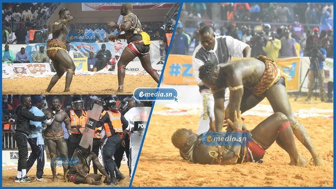 Mais Siteu ne se laisse pas piéger. Dans un éclair de lucidité, il exécute un croche-pied habile et projette Balla Gaye 2 au sol. Une chute nette qui scelle sa victoire.
