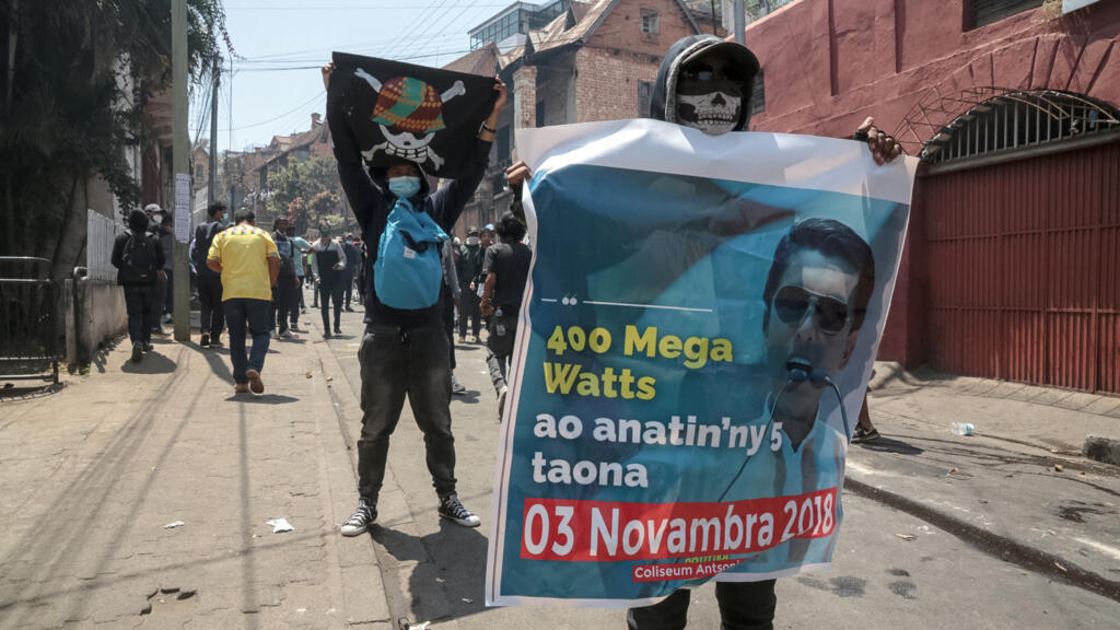 « De l’eau, de l’électricité, c’est tout ce qu’on vous demande ! », hurle cet homme aux forces de l’ordre. « Laissez-nous réclamer nos droits ! » Les manifestants brandissent des drapeaux malgaches, et puis bien sûr, des drapeaux noirs, avec au centre, le logo One Piece, cette tête de mort devenue symbole des contestations anti-régime ces dernières semaines au Népal, coiffée cette fois d’un chapeau malgache.