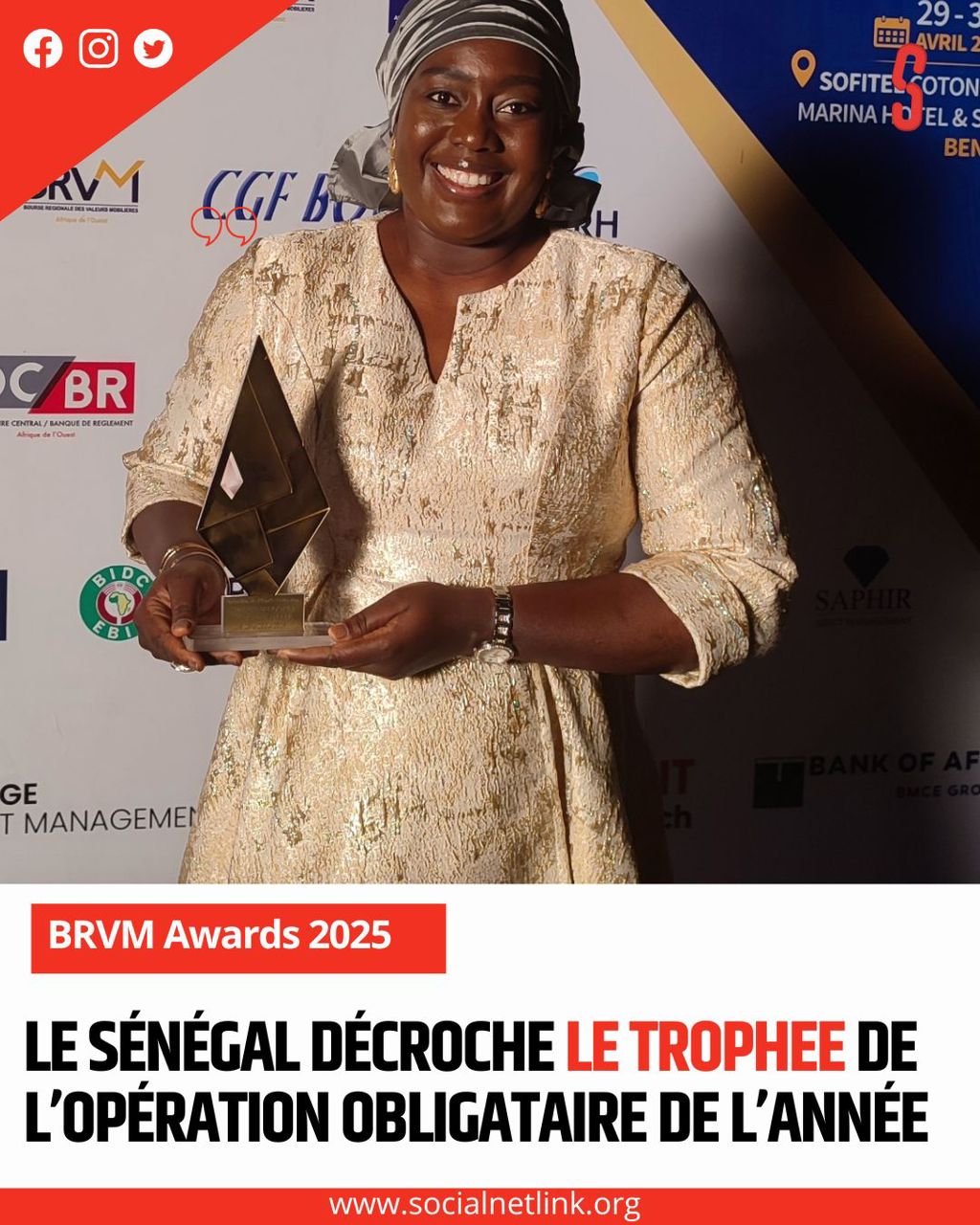 Le Sénégal continue de s’illustrer sur la scène financière régionale. Lors de la 6e édition des BRVM Awards, organisée à Cotonou le 30 avril 2025, l’État sénégalais a été distingué pour sa performance remarquable sur les marchés obligataires. Il a remporté le prix de l’opération obligataire de l’année grâce à l’émission intitulée « État du Sénégal 6,25 % 2024-2029 ».