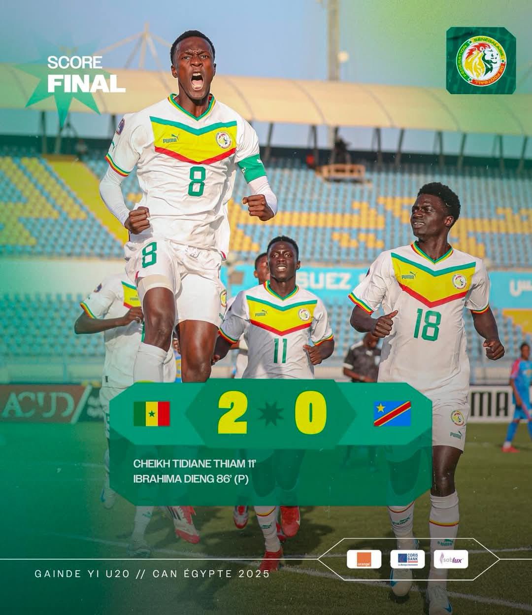 Le Sénégal a battu ce jeudi la RD Congo sur le score de 2 à 0 à Suez en Egypte. Les buteurs du Sénégal sont Cheikh Thiam et Ibrahima Dieng.