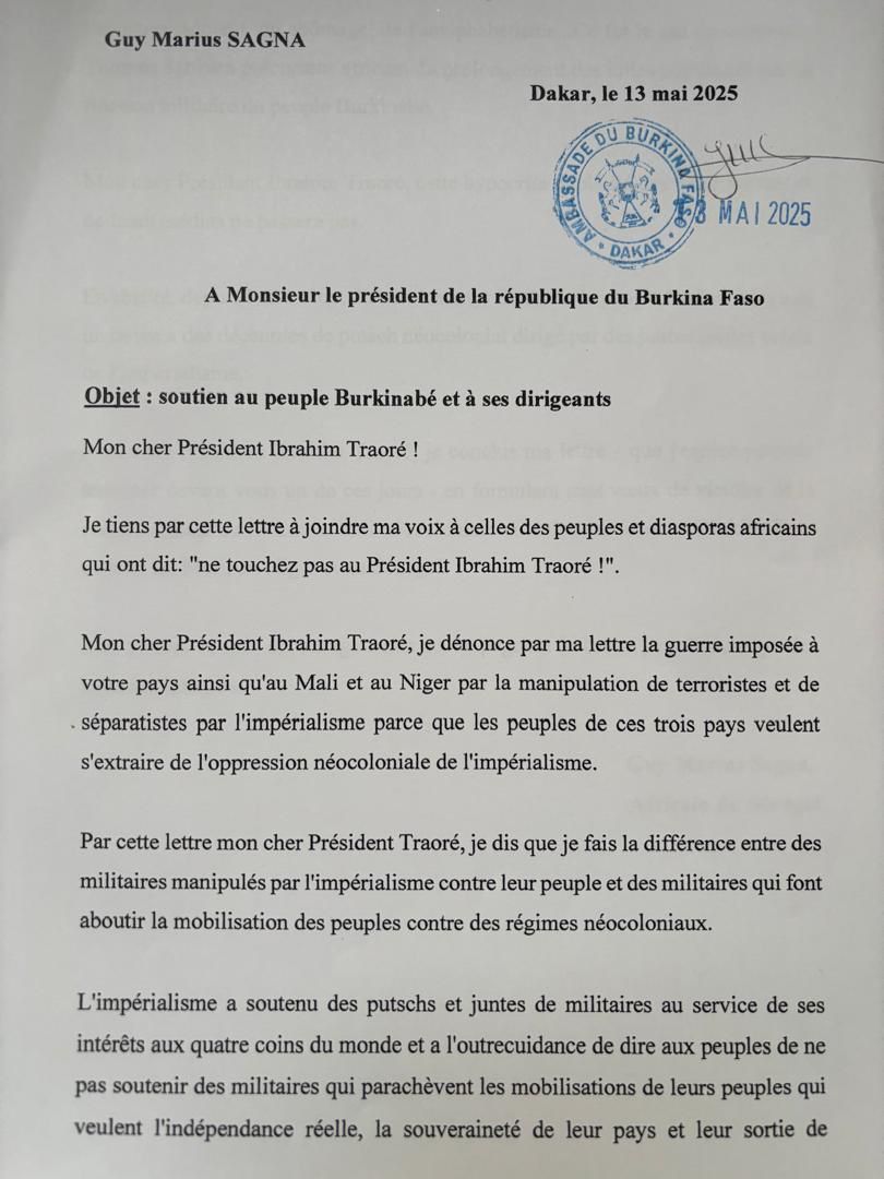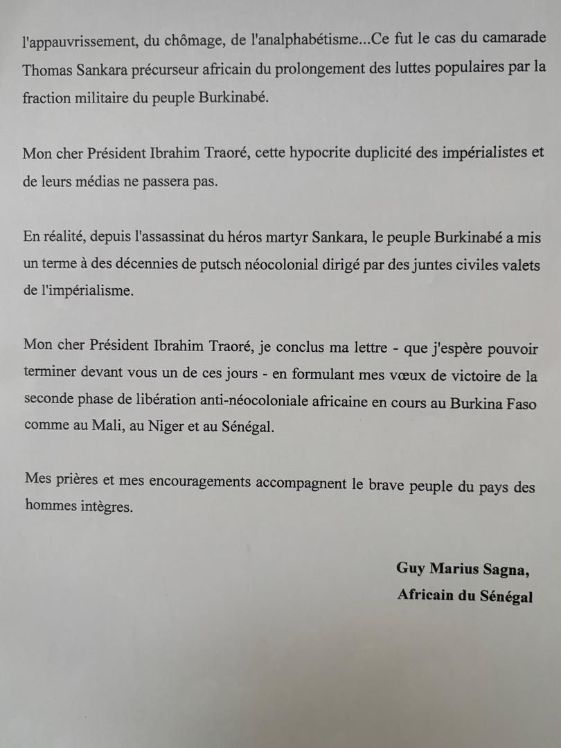In extenso la lettre de Guy Marius Sagna :