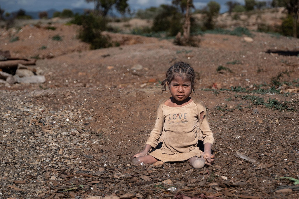 UNICEF/Safidy Andrianantenain Une fillette atteinte de polio travaille dans une mine à l’Anôsy, dans le sud-est de Madagascar.