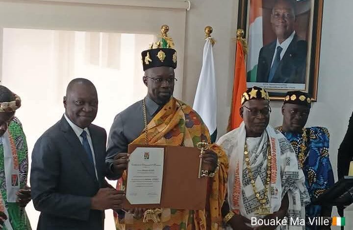 En visite officielle en Côte d’Ivoire, le Premier ministre sénégalais Ousmane Sonko a été honoré ce samedi 31 mai en recevant le titre de Citoyen d’honneur de la ville de Bouaké, lors d’une cérémonie empreinte de symboles et d’émotions.
