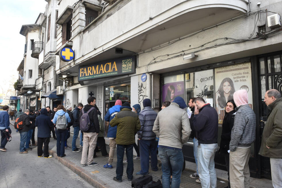 people line up early morning in front of a pharmacy to buy marijuana in Montevideo, on July 19, 2017. Pharmacies in Uruguay start selling marijuana from Wednesday under the final phase of a four-year-old law that made the small South American country the first in the world to legalize pot from production to sale. / AFP PHOTO / MIGUEL ROJO