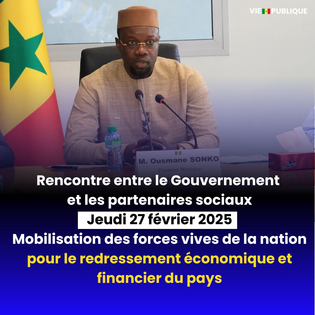 Le premier ministre a annoncé la tenue, le jeudi 27 février 2025, de la première rencontre entre le Gouvernement et les partenaires sociaux, conformément aux orientations du Président de la République. Cette initiative vise à mobiliser l’ensemble des forces vives de la Nation pour accompagner l’œuvre de redressement économique et financier du pays.