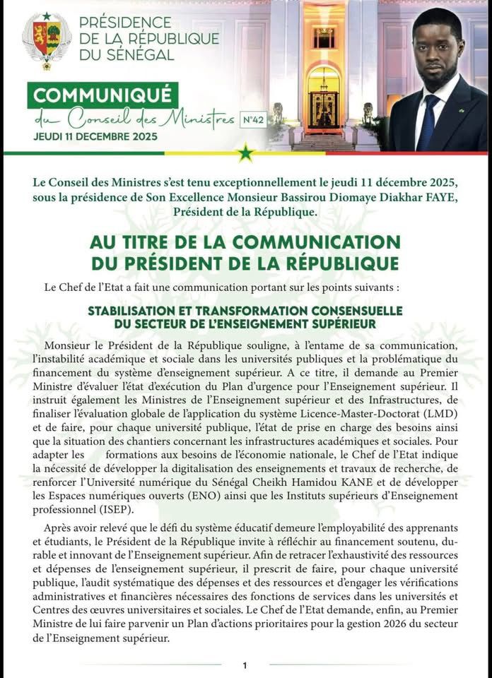 Navigation de l’article NOTRE SOUVERAINETÉ À L’ÉPREUVE DE LA DETTE Sénégal/Paiement des réclamations de bourses : début des opérations ce 12 décembre