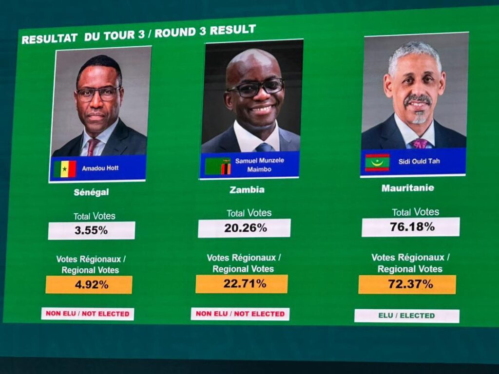 Si Samuel Munzele Maimbo avait pris une courte avance au premier tour, porté par les votes des actionnaires non régionaux (notamment européens et asiatiques), il n’a pas réussi à contenir la dynamique en faveur de Sidi Ould Tah, qui s’est affirmé au fil des tours comme le choix légitime du continent.